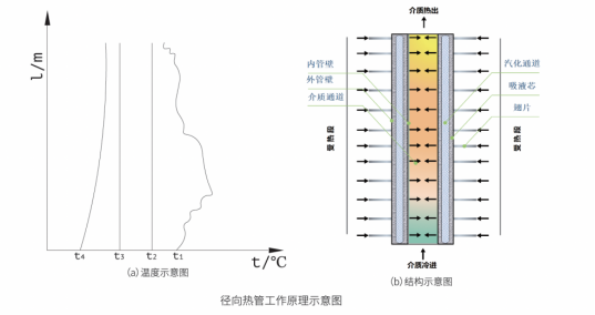 v 径向热管通过工质的相变来传热的,温度均匀性好,抗热冲击性能好,温度易于控制,可靠性更高;