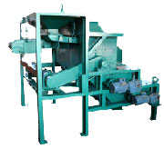 物料经输送管道进入料仓,经料仓进入电磁振动给料机,通过给料机将物料均匀的给到转动的滚筒表面。(永磁滚筒磁系用高性能稀土钕铁硼组成,磁场强度高,透磁深度大,退磁慢,滚筒表面磁场强度可达到1000mT。滚筒一端的偏心连杆机构能带动磁系作一定振幅和频率的摆动,增加了物料流经滚筒表面时铁磁物的翻滚次数。)此时90%以上的在物料加工过程中掺杂进的机械铁和一部分矿物铁被滚筒吸附,并随着滚筒的旋转自动从出铁口排出。滚筒又对一些弱磁性的矿物铁起到了很好的磁化作用,物料经滚筒流到磁辊的输送带上。(输送带是用特殊符合材料做成的,它具有耐磨性好,强度高,使用寿命长等优点。磁辊是用高性能稀土钕铁硼作磁源,采用特殊的软磁材料导磁,经过独特的磁系设计和精密加工而做成,它具有分选磁场高(可达2000mT),比磁力大等特点。)经过滚筒磁化的弱磁性铁杂质就比较容易的吸附于磁辊上,并随着磁辊上皮带的旋转自动将铁杂质排出,落于集铁斗,物料落入第二级输送带,流经二级磁辊,再经过二级磁辊选除。经过三级选除后,一般物料中氧化铁的除净率可达到95%以上。