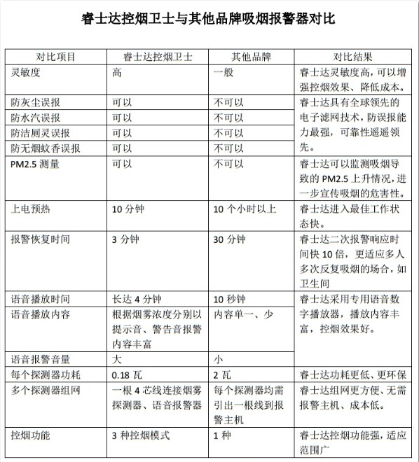 睿士达RESDA(Reliable Early Smoke Detection Apparatus)控烟卫士主要用于香烟烟雾的探测及报警,其具备如下主要特点: